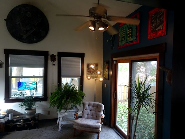 Now we burn frankincense here and our deck encroaches Zoo property. In the morning we hear elephants from our bathroom window. We hear coyotes howl at the sirens on Pearl Road going to Metro Health hospital. Sometimes the owls hoot at the coyotes. Sometimes the coyotes howl at the dogs.